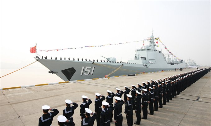 A member of the Chinese navy conducts observations from amphibious landing craft Changbaishan on Monday. A flotilla with China’s South China Sea fleet on Monday set sail from a military port in Hainan Province for a drill in the South China Sea. Photo: Xinhua