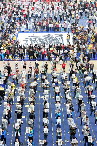 2,000 residents gather Sunday in Daming Palace ruins park, Shaanxi Province, to write Chinese character biang, one of the most complicated characters. Biang is a type of local noodle and the event is aimed at promoting local culture. Photo: CFP