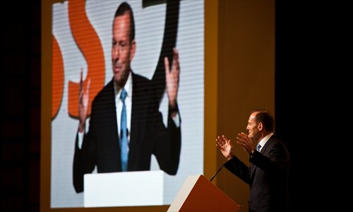 Australian Prime Minister Tony Abbott delivers a speech Friday at the closing ceremony of Australia Week in China 2014 in Shanghai. More than 1,800 people attended the closing of the four-day event, which took place in Beijing, Shanghai, Guangzhou and Chengdu. Photo: Cai Xianmin/GT