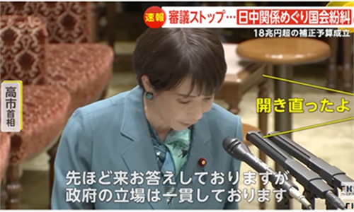 At the House of Councillors Budget Committee meeting on Tuesday, Japanese Prime Minister Sanae Takaichi, after nearly an hour of being repeatedly questioned over her erroneous Taiwan-related remarks, still claimed "The government's position has been consistent," without substantially retracting her previous words, leading an opposition party member to criticize her as "obstinately unrepentant," according to Japanese media and their attached video clips.