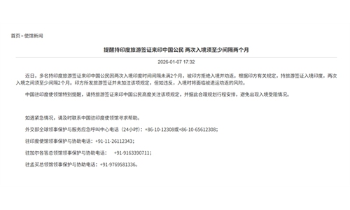 India has recently introduced a type of new e-Business visa for Chinese nationals, known as the e-B-4 Visa, to facilitate specific business activities such as equipment installation and commissioning. Hailed by Indian media on Tuesday as a people-centric move to reset bilateral ties amid recent diplomatic thawing, the online visa – effective January 1 – allows a stay of up to six months but takes around 45-50 days to process.