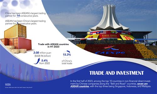 -15.3% of China's foreign trade came from ASEAN in H1 2023 -16.4 million passenger trips have been made and 21 million tons of goods have been transported by the China-Laos Railway during its 18-month operation -The total import and export volume between China and other RCEP member countries was 6.1 trillion yuan in H1 2023, up 1.5% y-o-y -Over 200,000 students have been exchanged between China and ASEAN