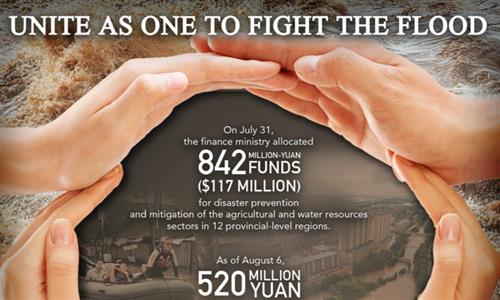 #GTGraphic: As heavy rainfall batters more regions, Chinese authorities and the society devoted all-out efforts to combat floods: -520m yuan in central natural disaster relief funds -509 flood fighting and emergency rescues from Jul 30 to 31 -980m yuan of donation from private enterprises -1,900 food packages, 900 raincoats, 700 blankets airdropped by PLA air force