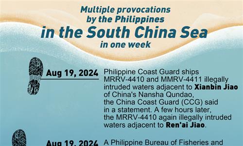 The Philippines has been stirring up troubles through provocative acts one after another targeting China's islands and reefs in the South China Sea, including Xianbin Jiao, Ren'ai Jiao and Huangyan Dao. Check out the graphic to learn more: