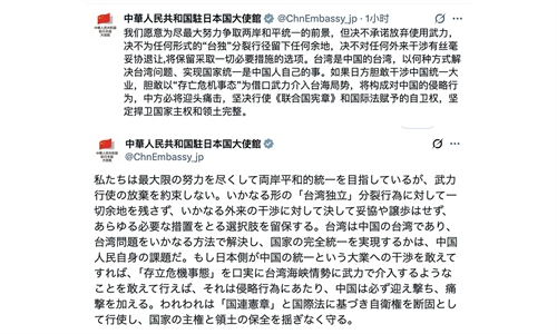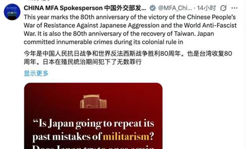 China's Foreign Ministry spokesperson has consecutively posted English and Japanese graphic messages on social media platform X, warning Japan to "stop playing with fire on the Taiwan question", following Japanese Prime Minister Sanae Takaichi's claim during a Diet hearing last ...