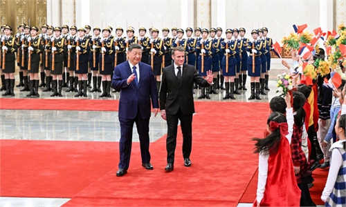 Chinese President Xi Jinping held a welcome ceremony for French President Emmanuel Macron, who is on a state visit to China, in Beijing on Thursday.
