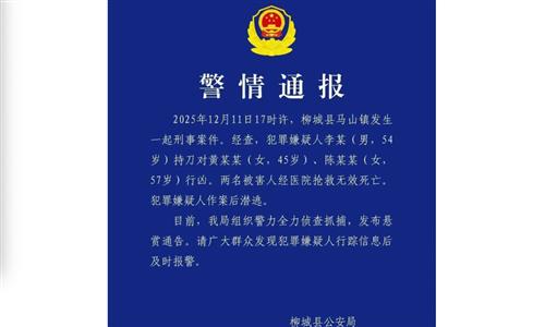 Police in Liuzhou, South China's Guangxi Zhuang Autonomous Region issued a reward notice on Sunday after a suspect fatally stabbed two women and fled the scene.