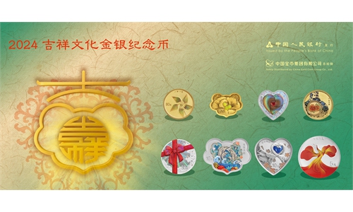 The People's Bank of China announced on Monday that a set of 2024 auspicious cultural gold and silver commemorative coins will be issued on May 20, among which, two heart-shaped commemorative coins have caught the attention of the public.