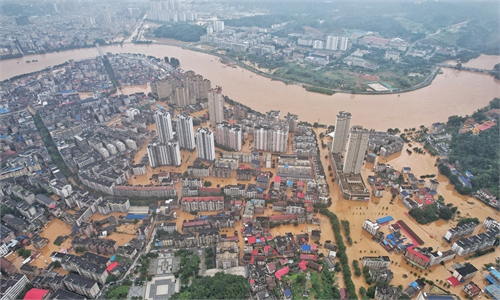 "Our media center is now under water," in a video clip released early Tuesday by the Integrated Media Center in Pingjiang county in Hunan Province that faces the worst flooding in 70 years due to heavy rains, a reporter revealed the complete inundation of the first floor of their media center, which has sparked public concerns over the county's wellness and gained a thumbs-up from many netizens for the local journalists holding fast to their positions.