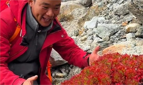 A social media account named "Sherpa Tenzin" posted a video clip saying this on social media Douyin.com, showing a rare, second-class nationally protected plant discovered in the Himalayas, Jimu News reported on Monday.