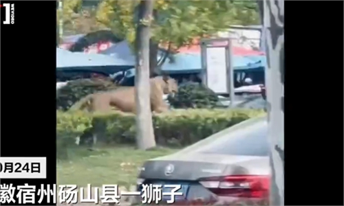 Residents in Dangshan County, East China's Anhui Province, received an unexpected sight on last Friday when a lion was spotted running along a roadside and through a greenbelt area, according to a video clip circulating online.