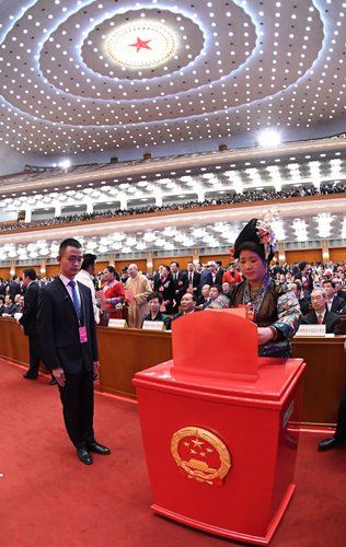 At a plenary meeting of the 13th National People's Congress (NPC) on Sunday, 2,958 national legislators voted in favor of Constitutional changes, with two against and three abstentions.