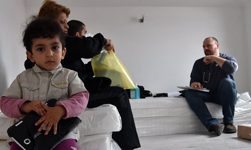 A family of migrants consults a medical worker from aid organization Médecins Sans Frontières (Doctors Without Borders), in a room of a repurposed suburban house in Sarajevo, on March 19, 2018. More than 60 migrants, including 28 children, are currently accommodated at this location, under the care of a small group of local and international humanitarian NGOs. Photo: AFP