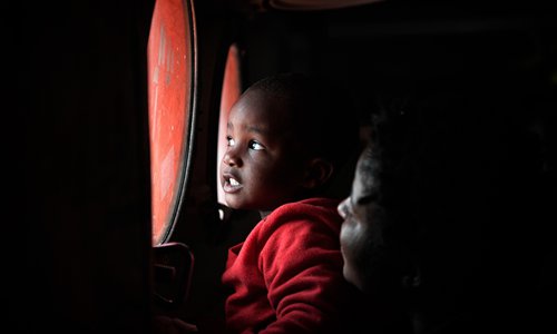 A child is held up to look out from a porthole on The Aquarius upon its arrival at the Sicilian port of Messina, on May 14, 2018. On May 12, 73 migrants of various nationalities, including women and children, were rescued by The Aquarius, a rescue vessel chartered by SOS-Mediterranee and Médecins Sans Frontières (Doctors Without Borders). Photo: VCG