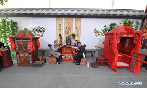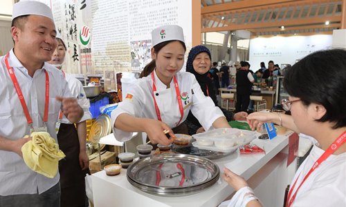 Folk arts are displayed during the Asian Cuisine Festival at the Olympic Park in Beijing, capital of China, May 16, 2019. The week-long Asian Cuisine Festival, as part of the Conference on Dialogue of Asian Civilizations (CDAC), was held in four cities of Beijing, Hangzhou, Chengdu and Guangzhou. (Xinhua/Wang Yuguo)