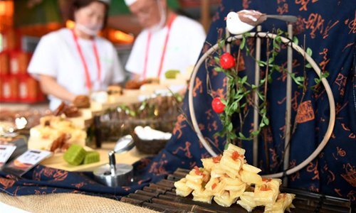 Snacks are seen during the Asian Cuisine Festival at the Olympic Park in Beijing, capital of China, May 16, 2019. The week-long Asian Cuisine Festival, as part of the Conference on Dialogue of Asian Civilizations (CDAC), was held in four cities of Beijing, Hangzhou, Chengdu and Guangzhou. (Xinhua/Zhang Chenlin)