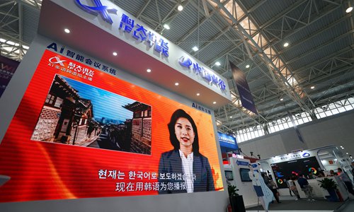 Xiaoqing, an artificial intelligence (AI) multilingual news anchor developed by China's AI champion iFlytek, broadcast news at the 3rd World Intelligence Congress in North China's Tianjin on Saturday, winning positive feedback from attendees. AI applications are expected to surge and bring profits to many Chinese companies in 2019, said Liu Qingfeng, chairman of iFlytek. Photo: IC