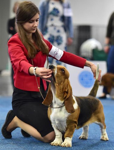 A Basset Hound is seen during the Hund and Katz exhibition in Dortmund, Germany, on May 19, 2019. The three-day event hosted by German Kennel Club, presents dogs and cats of more than 200 breeds from around the world. (Photo: Xinhua)