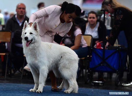 A Berger Blanc Suisse is seen during the Hund and Katz exhibition in Dortmund, Germany, on May 19, 2019. The three-day event hosted by German Kennel Club, presents dogs and cats of more than 200 breeds from around the world. (Photo: Xinhua)