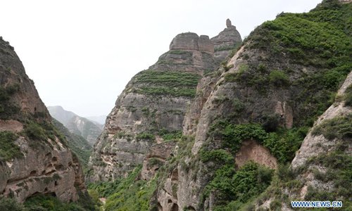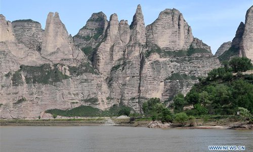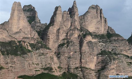 Photo taken on May 19, 2019 shows a stone forest at Bingling Danxia National Geological Park in Yongjing County, northwest China's Gansu Province. Danxia landform is a unique type of landscapes formed from red sandstone and characterized by steep cliffs. (Photo: Xinhua)