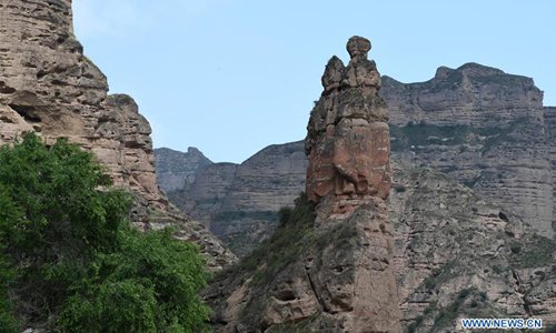 Photo taken on May 18, 2019 shows a stone forest at Bingling Danxia National Geological Park in Yongjing County, northwest China's Gansu Province. Danxia landform is a unique type of landscapes formed from red sandstone and characterized by steep cliffs. (Photo: Xinhua)