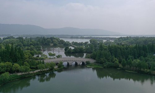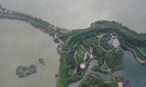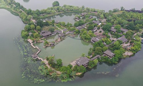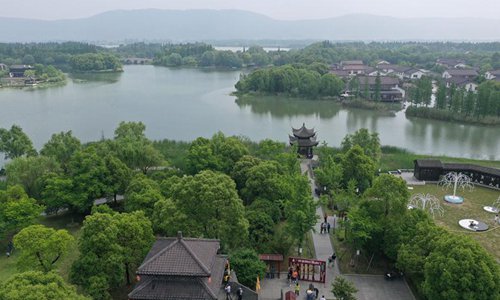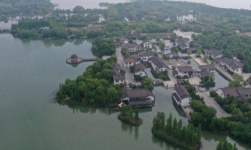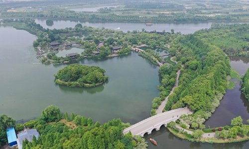 Aerial photo taken on May 19, 2019 shows the scenery of the Shanghu scenic area in Changshu City, east China's Jiangsu Province. (Xinhua/Ji Chunpeng)