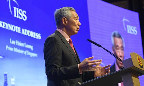 Singaporean Prime Minister Lee Hsien Loong delivers a keynote speech at the 18th Shangri-La Dialogue held in Singapore, May 31, 2019. The 18th Shangri-La Dialogue opened here Friday evening to discuss the security situation and its challenges in the Asia-Pacific. In a keynote speech to open the event, Singaporean Prime Minister Lee Hsien Loong called for building a broader regional cooperation and multi-lateral arrangements, reaffirming Singapore's support to the China-proposed Belt and Road Initiative. (Xinhua/Then Chih Wey)
