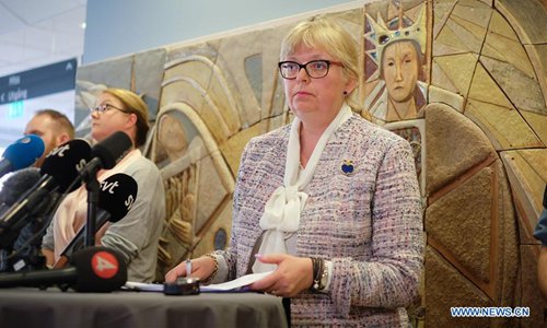 Sweden's Deputy Director of Public Prosecutions Eva-Marie Persson (1st R) attends a news conference at Uppsala District Court in Uppsala, Sweden, on June 3, 2019. A Swedish court ruled on Monday that WikiLeaks founder Julian Assange will not be detained for alleged rape, the country's prosecution authority said. (Photo: Xinhua)