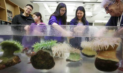 People view living corals in the aquarium's laboratory during the World Oceans Day event at Vancouver Aquarium in Vancouver, Canada, June 8, 2019. Thousands of people visited Vancouver Aquarium and participated in different aquatic-themed activities to mark the World Oceans Day. (Xinhua/Liang Sen)