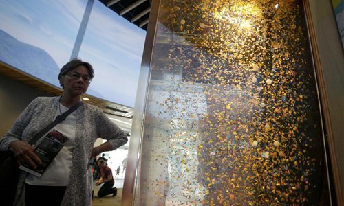 People view ocean garbages displayed during the World Oceans Day event at Vancouver Aquarium in Vancouver, Canada, June 8, 2019. Thousands of people visited Vancouver Aquarium and participated in different aquatic-themed activities to mark the World Oceans Day. (Xinhua/Liang Sen)