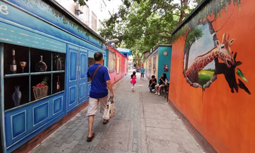 More than 20 colorful murals paint on walls along a street in Wuhan, Central China's Hubei Province, attract visitors to the area on Tuesday. Photo: IC