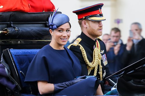 The Duchess of Sussex joined her husband at the annual Trooping the Colour ceremony, in her only official royal engagement since she gave birth to their son Archie in early May.