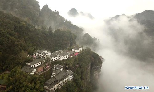 Aerial photo taken on March 27, 2019 shows scenery of the Qiyunshan Scenic area in Huangshan City of east China's Anhui Province. Anhui Province is located in east China with the Yangtze River, Huaihe River and Xin'an River running through. Huaibei Plain, Jianghuai Hilly Land and Wannan Mountainous Area also contribute to the province's various landscapes. Anhui has made great efforts in ecological development and always been vigorously searching for the harmony between man and nature over years. The province has seen on-going improvement of natural environment in water quality and forest coverage. As an ecological model of Anhui Province, the Wannan area well combines beautiful scenery with brilliant culture. The white walls and black tiles of local buildings have grown into a cultural icon of the region. From June 9 to 11, the Beijing International Horticultural Exhibition will display Anhui's achievements in ecological development with an Anhui Day theme event. (Photo: Xinhua)