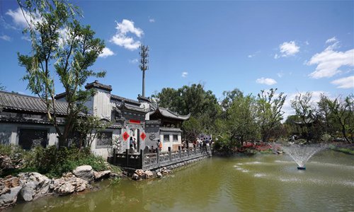 Tourists visit the Anhui Garden during the Beijing International Horticultural Exhibition in Yanqing District, Beijing, capital of China, June 9, 2019. Anhui Province is located in east China with the Yangtze River, Huaihe River and Xin'an River running through. Huaibei Plain, Jianghuai Hilly Land and Wannan Mountainous Area also contribute to the province's various landscapes. Anhui has made great efforts in ecological development and always been vigorously searching for the harmony between man and nature over years. The province has seen on-going improvement of natural environment in water quality and forest coverage. As an ecological model of Anhui Province, the Wannan area well combines beautiful scenery with brilliant culture. The white walls and black tiles of local buildings have grown into a cultural icon of the region. From June 9 to 11, the Beijing International Horticultural Exhibition will display Anhui's achievements in ecological development with an Anhui Day theme event. (Photo: Xinhua)