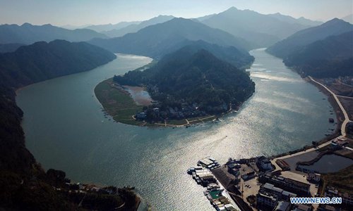 Aerial photo taken on Jan. 18, 2019 shows the scenery of Shexian County, Huangshan City of east China's Anhui Province. Anhui Province is located in east China with the Yangtze River, Huaihe River and Xin'an River running through. Huaibei Plain, Jianghuai Hilly Land and Wannan Mountainous Area also contribute to the province's various landscapes. Anhui has made great efforts in ecological development and always been vigorously searching for the harmony between man and nature over years. The province has seen on-going improvement of natural environment in water quality and forest coverage. As an ecological model of Anhui Province, the Wannan area well combines beautiful scenery with brilliant culture. The white walls and black tiles of local buildings have grown into a cultural icon of the region. From June 9 to 11, the Beijing International Horticultural Exhibition will display Anhui's achievements in ecological development with an Anhui Day theme event. (Photo: Xinhua)