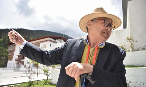 Tseren Surenjav, former editor-in-chief of the Montsame News Agency in Mongolia, visits a town in Nyingchi, southwest China's Tibet Autonomous Region, June 11, 2019. Nearly 30 journalists from Britain, Italy, Switzerland, Argentina and Nepal, and foreign experts working for Chinese media visited Nyingchi in the southeastern part of Tibet Autonomous Region from Monday to Wednesday. (Photo: Xinhua)