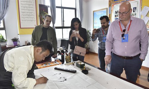 Foreign journalists visit the Second Elementary School of Nyingchi in Nyingchi, southwest China's Tibet Autonomous Region, June 10, 2019. Nearly 30 journalists from Britain, Italy, Switzerland, Argentina and Nepal, and foreign experts working for Chinese media visited Nyingchi in the southeastern part of Tibet Autonomous Region from Monday to Wednesday. (Photo: Xinhua)