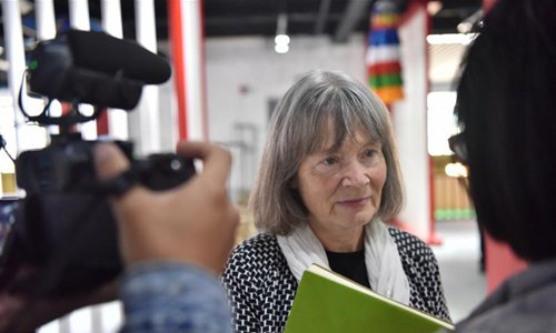 Elizabeth Mcleod, CEO of Meridian Line Films in Britain, speaks during an interviews as she visits a makerspace in Nyingchi, southwest China's Tibet Autonomous Region, June 11, 2019. Nearly 30 journalists from Britain, Italy, Switzerland, Argentina and Nepal, and foreign experts working for Chinese media visited Nyingchi in the southeastern part of Tibet Autonomous Region from Monday to Wednesday. (Photo: Xinhua)