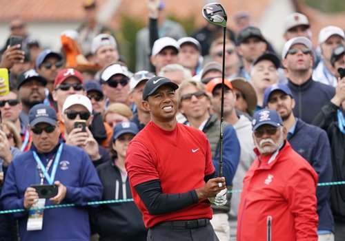 Tiger Woods hits a tee shot in the final round of the 2019 US Open at Pebble Beach Golf Links on Sunday in Pebble Beach, California. Photo: IC