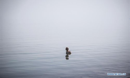 A man is seen in the Urmia Lake in northwestern Iran on June 17, 2019. The expansion of water level of Iran's northwest Urmia Lake over the past months has attracted tourists both from and out of Iran. The lake, which has been on the verge of extinction over the past decades, began to expand following the two-month-long springtime showers that began pouring across the country in March. (Photo: Xinhua)
