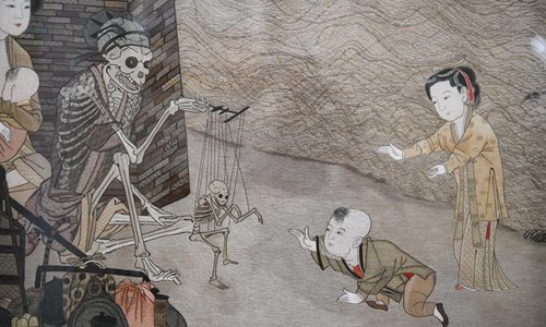 Photo taken on June 11, 2019 shows part of the Suzhou Embroidery work "Skeleton Fantasy" by Yao Huifen. Suzhou Embroidery, one of the four most famous embroideries in China, is originated in Suzhou and has a history of more than 2,000 years. Known for its elegant pattern, artistic design, fine handwork and varied stitches, it was listed as a national intangible cultural heritage of China in 2006. Yao Huifen, representative inheritor of the craft, was born in Suzhou in 1967 in a family of embroidery. Influenced by her grandparents and parents since young, she fell in love with the handicraft and could make great work when she was a teenager. After becoming the apprentice of masters Mu Zhihong and Ren Huixian, Yao's skill made great progress. She opened her own workshop of Suzhou Embroidery with her sister Yao Huiqin in 1998, starting her career as a craftswoman. Over the years since 1991, Yao's artworks have earned numerous prizes, including the "Shanhua Prize", the highest prize for China's folk art. In the recent ten years, Yao Huifen created a new method of embroidery called "Simple Stitch", and incorporated Chinese traditional paintings and portraits into her works, many of which were collected by museums and art galleries including the British Museum.Yao has also gone to many countries to introduce Suzhou Embroidery as its promotion ambassador, including the United States, France, Italy, Britain, Russia, Sweden and Finland. Despite her achievements, Yao sticks to her embroidery career as a craftswoman and has created lots of artworks with distinctive styles. In 2017, 34 Suzhou Embroidery works of Yao Huifen were chosen to be displayed at the Venice Biennale China Pavilion and won extensive attention. One artwork "Skeleton Fantasy" uses about 50 kinds of stitches of Suzhou Embroidery, making a breakthrough on the traditional embroidery methods. Zhenhu Town of Suzhou City has more than 8,000 craftsmen of Suzhou Embroidery and hundreds of shops and has developed an industry of Suzhou Embroidery in recent years with the help of local government. In order to inherit the craft, Yao has accepted numerous apprentices both from home and abroad since the 1990s, worrying that there are less young people willing to learn the art nowadays. "I want to plant a seed of Suzhou Embroidery in their mind, even if they only want to learn it as a hobby, " Yao said, "and I hope more youngsters will join us and pass on the traditional craft through generations." (Xinhua/Li Xiang)