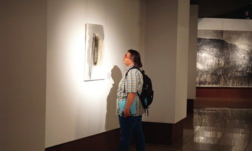 A visit looks at a painting. Photo: Yin Yeping/GT