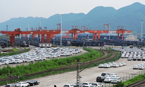 German cars arrive in Southwest China's Chongqing Municipality via the CR Express China-Europe cargo trains en masse on June 1. Photo: VCG