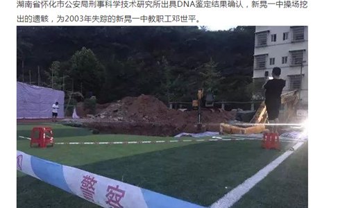 Authorities in Huaihua, Central China's Hunan Province said on Sunday the identity of a body found under a high-school playground is that of a member of the school's faculty in charge of supervising engineering quality.