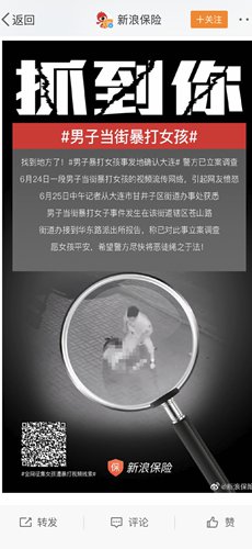 A post looking for the suspect in the video spreads widely on Sina Weibo Photo: A screenshot of Sina Weibo