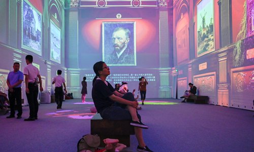 People visit an immersive exhibit on Vincent van Gogh in Beijing on Monday. The exhibit opened at the National Museum of China on June 22 and will run until September 22. Photo: AFP
