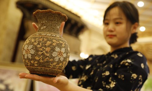 A North Korean vase decorated with sea snail shells Photo: Li Hao/GT