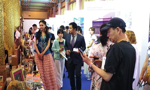 Visitors walk pass the exhibits and painting walls. Photo: Yin Yeping/GT