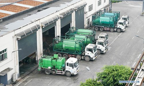 Special transport vehicles full of waste are seen at a waste disposal plant of Chongqing Environment & Sanitation Group in Chongqing, southwest China, June 27, 2019.(Xinhua/Liu Chan)