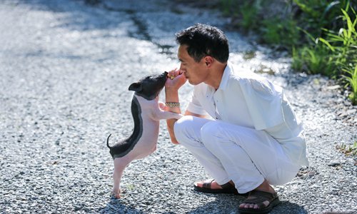 Su Hongxing, a one-armed man in Kaihua county, East China's Zhejiang Province who sings and dances accompanied by a miniature pig, has gone viral on social media. Su started a business raising miniature pigs and sells tens of millions of them annually. Photo: VCG